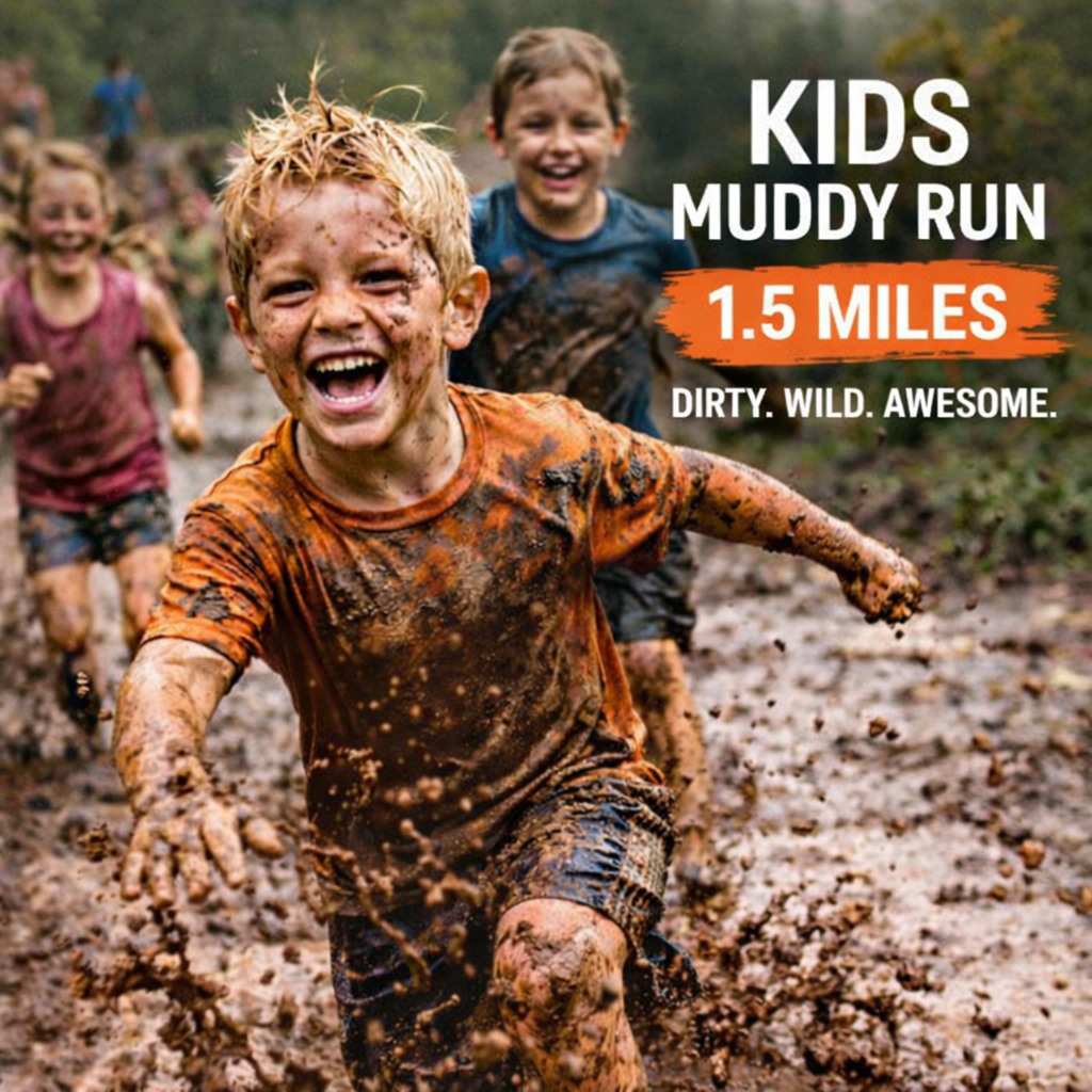 Age-appropriate obstacles so the little ones can earn their mud too. Open to ages 4-13.